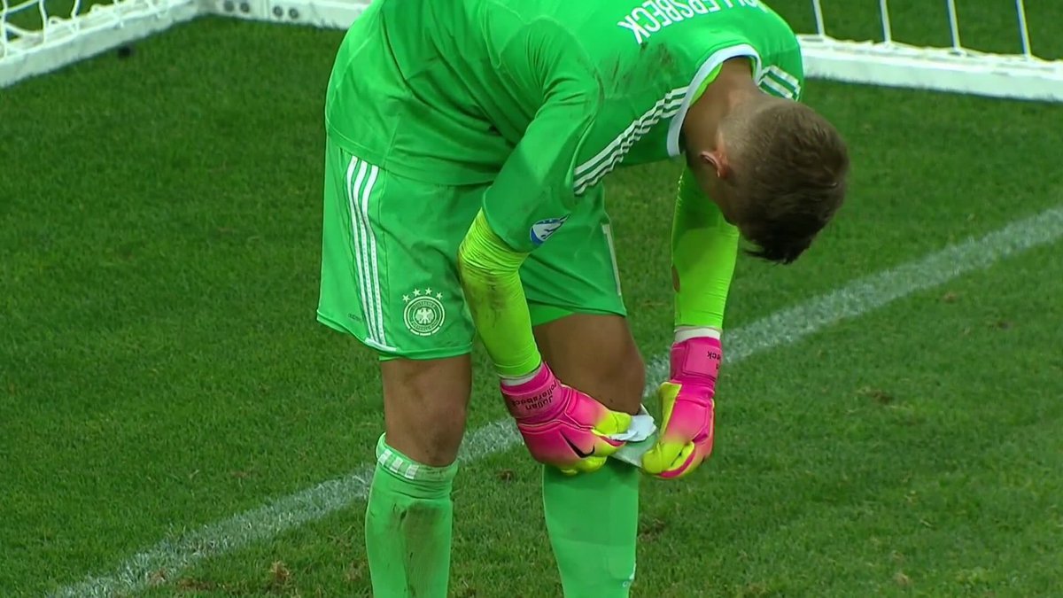 Вратарь молодежной сборной Германии Джулиан Поллерсбек заранее подготовился к серии пенальти в полуфинале ЧЕ по футболу. Он изучил типичные удары соперников-англичан и, как в школе, сделал шпаргалку, которую спрятал под левую гетру.