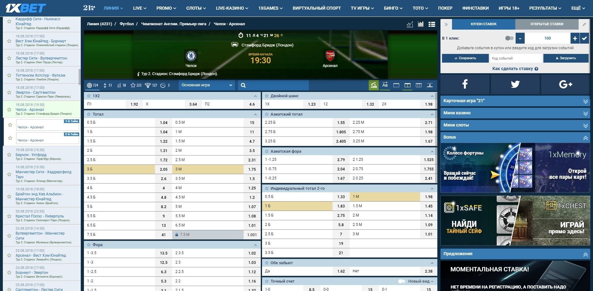 4. Добавляй любое количество событий в купон. Доступны ставки на исход матча, двойной шанс, тотал голов, точный счет и др. События в купоне не должны противоречить друг другу.
